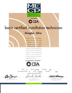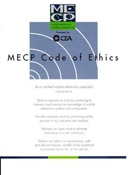 MECP (Mobile Electronics certified professional) Provide by CEA.(CONSUMER ELECTRONIC ASSOCIATION).